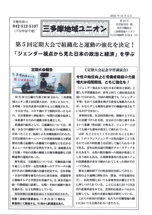 〇2025年11月8日「三多摩地域ユニオン第9回定期大会」開催