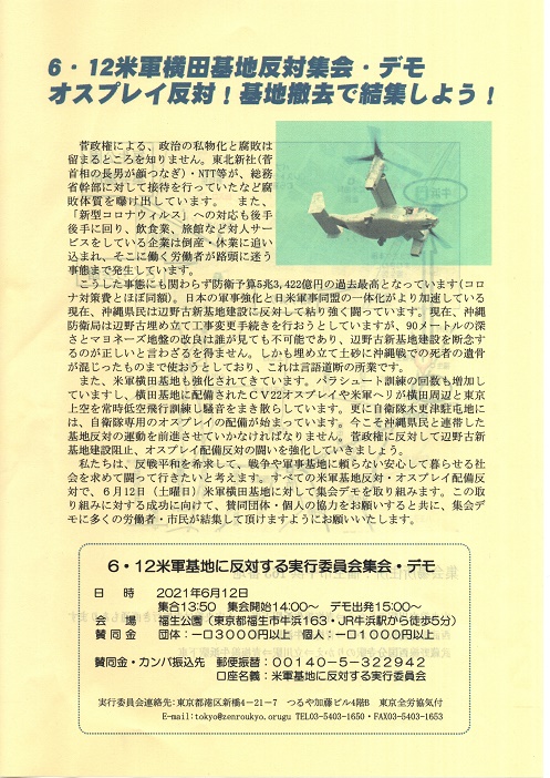 〇2025年11月16日「オスプレイにNO!横田配備と飛行に反対する集会・デモ」参加
