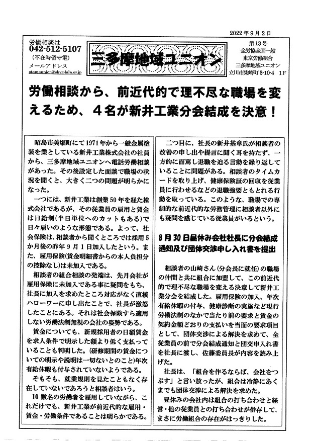 ●機関紙第13号(9月2日発行)をお届けします