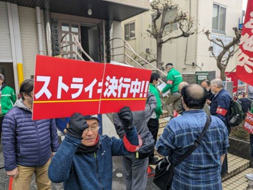 九段下交差点にて最低賃金ビラ配布・情宣⇒少年写真新聞社社前集会⇒学究社社前集会